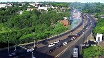 Incêndio em vegetação cobre BR-277 de fumaça próximo da Aduana em Foz do Iguaçu