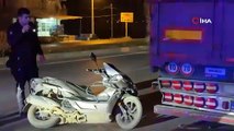 Park halindeki tıra çarpan motosikletin sürücüsü yaralandı