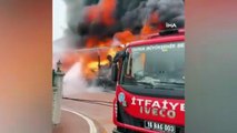 Korku dolu anlar! Yolcu otobüsü alev alev yandı