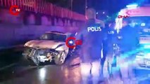 İstanbul'da alkollü sürücü araç yol ayrımındaki boşluğa düştü