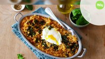 Riz au four, safran, épinards et oeuf
