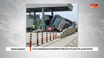 Sepasang suami isteri berdepan detik cemas apabila pacuan empat roda yang dinaiki dihempap kayu balak yang jatuh dari lori yang sedang bergerak di Jalan Merotai - Kalabakan.