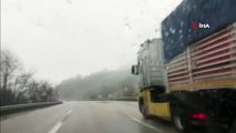 Bursa'da beklenen kar yağışı hızlı başladı. Kapanan yollar sebebiyle sürücüler, ters şeritten dönmek zorunda kaldı. Kar lastiği takılı olmayan araçlar mahsur kalırken sürücülerin bir çoğu araçlarını yol kenarlarına çekip yollarına yürüyerek devam etmek zorunda kaldı.