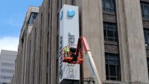 Cambian el letrero del pajarito en edificio de Twitter tras anuncio del cambio de logo