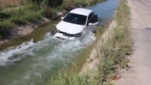 Sulama kanalına devrilen otomobilin sürücüsü kurtarıldı