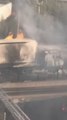 Truck loses control, explodes on US highway