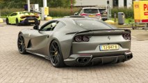 Gold Ferrari 812 Superfast with Straight Pipes - LOUD V12 Sounds !