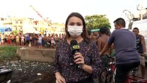 b'Caminho com carga de cerveja tomba em canal no bairro do Jurunas '