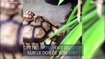 Bébé tortue fait du stop sur le dos vielle amie