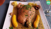 Cuisse de dinde rôtie à la bière et au genièvre d'après les sœurs Scotto, purée de patate douce