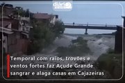 Temporal com raios, trovões e ventos fortes faz Açude Grande sangrar e alaga casas em Cajazeiras