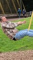 This man was trying to balance himself while hanging on the monkey bars. However, as soon as he grabbed the next bar and lifted his legs, he couldn’t maintain his weight. His grip slipped, and he fell down with a loud thud!