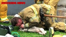 Bombeiros salvam cão de incêndio