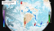 Quarta-feira, 21 de janeiro: Precipitação, pressão a nível médio do mar e nebulosidade prevista entre quarta (21) e sexta-feira (23).