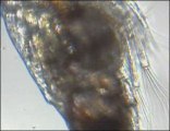 on peut voir des larves de japonica encore dans l'oeuf( la ponte a eu lieu la veille), d'autres petites bestioles et de temps en temps un micro-vers qui pointe le bout de son nez. Les larves sont vivantes ,ont peut les voir respirer.