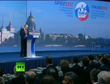Russian President Dmitry Medvedev delivered his keynote speech at the official opening of the St Petersburg economic forum, calling for an overhaul of the global financial system and rejecting protectionism.