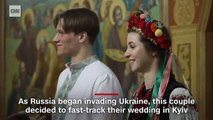 Bomba seslerinin dinmediği Kiev'de genç çift evlendi