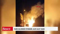 Sultangazi'de park halindeki otomobil alev alev yandı