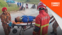 Pemandu lori mengalami kecederaan di kepala dan dihantar ke Hospital Tuanku Jaafar, manakala pemandu kereta tidak cedera.