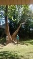 This is the moment a quick-thinking dad used his parental instincts to save his daughter from a nasty fall.
