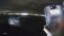 He was able to quickly pull her to safety on the sofa, where she burst into tears but was luckily unharmed.