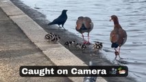 Crow Swoops in and Grabs Duckling as It Was Going Under Car