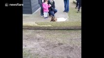 Two baby goats have a fight