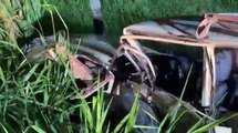 Colisão entre BMW e Brasília deixa motorista preso às ferragens, com ataque de abelhas