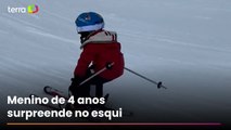 Mãe mostra evolução de filho de 4 anos no esqui