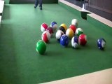 Can these footballs hold his weight, or will he make a splash?