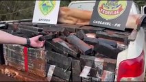 Imagens aéreas do Helicóptero Falcão mostram momento da abordagem a veículo carregado com maconha em Cascavel