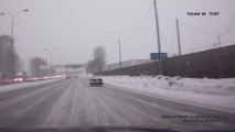 Dash cam captures vehicle losing control on icy highway