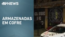 A polícia procura uma quadrilha que invadiu um clube de tiro e roubou 30 armas em São Paulo. O filho do proprietário foi feito refém e baleado de raspão na ação.