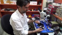 Adana'da telefon tamircisinde cep telefonu batarya kaynaklı bomba gibi patlayıp yanmaya başladı. O anlar saniye saniye görüntülendi.