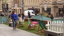 Footage shows the view from the top of the Scott Monument in Edinburgh.