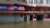 Trabzon'da şiddetli yağış: Göle dönen yolda yatağı sal yaptı
