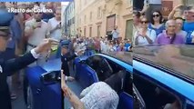 Pecco Bagnaia arriva al Duomo di Pesaro e saluta la folla