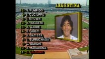 Argentina: Pumpido - Cuciuffo, Brown, Ruggeri, Garré - Giusti, Batista (46' Olarticoechea), Burruchaga, Borghi (46' Enrique) - Maradona, Valdano.