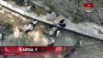 Karga suyun içindeki yılana böyle saldırdı
