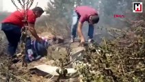 Alevler içerisinde kalan köpekleri tek tek böyle kurtardılar