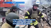KIEV (UCRAINA) (ITALPRESS) - “Oltre 440 droni e 32 missili. Uno degli attacchi più terribili su Kiev. Anche le regioni di Odessa, Zaporizhzhia, Cernihiv, Zytomyr, Kirovohrad, Mykolaiv e Kiev sono state attaccate durante la notte”. Così il presidente ucraino, Volodymyr Zelensky, ha commentato su Telegram gli attacchi effettuati questa notte dalle forze aeree di Mosca. “In totale, le case in otto quartieri di Kiev sono state danneggiate. I lavori sono ancora in corso dopo l'attacco su Odessa, i soccorritori sono al lavoro in tutti i punti di atterraggio. Tutte le vittime stanno ricevendo l'assistenza necessaria, si sa che 75 persone sono rimaste ferite. Ad oggi, 15 persone sono morte. Le mie condoglianze alle loro famiglie e ai loro cari”, ha proseguito Zelensky. “Attacchi del genere sono puro terrorismo. E il mondo intero, gli Stati Uniti e l'Europa, devono finalmente reagire come una società civile reagisce ai terroristi”, ha dichiarato ancora Zelensky.
