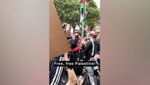 Liam Og O hAnnaidh, who performs under the name Mo Chara arrives at Westminster Magistrates Court charged with supporting a proscribed terrorist organisation. The rapper from the group Kneecap is accused of displaying a flag in support of Hezbollah at a London gig in November last year. Report by Blairm. Like us on Facebook at http://www.facebook.com/itn and follow us on Twitter at http://twitter.com/itn