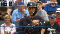 2017 Yankees (4.02.17) Aaron Judge hits a double to left field, scoring Starlin Castro to put the Yankees vs Rays