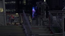 CCTV captured people rushing indoors after a firework fell and exploded on the ground during New Year's celebrations.