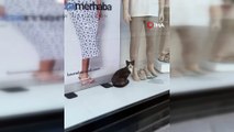 Mağazada kalan kedi vitrinin camını tırmalayarak yardım istedi