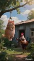 This cat isn't just chilling—she’s clearly on a mission! One paw in the air like she’s giving orders, tail wagging like a manager checking your progress. The hen? Just trying to mind her own business and NOT get fired. 😂 Watch till the end—this kitty’s got more attitude than my WiFi during a storm. 💼🐔🐾