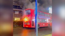 Dramatic footage shows double-decker bus on fire in central London