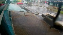 Vídeo mostra carro atravessando preferencial e se envolvendo em forte colisão no Centro