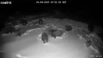 Pack of wolves hunt pack wild boars