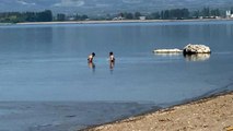 İstanbul'da Kadıköy Caddebostan sahilinde denize giren vatandaşlar, yunus balıklarıyla birlikte yüzmenin keyfini yaşadı. O anlar bir vatandaşın cep telefonu kamerasına yansıdı.